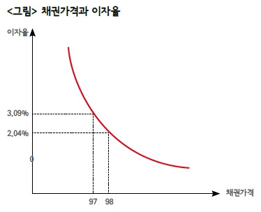 그렇기 때문에 채권으로도 손실이 날 수 있고, 금리가 내리면 반대로 채권 가격이 오를 수도 있는 것입니다.