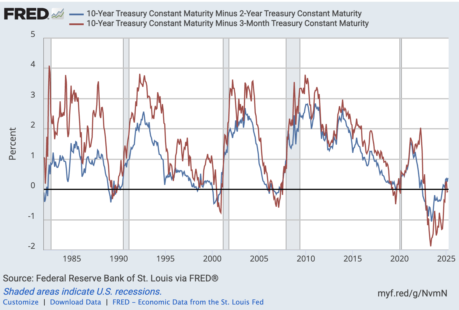 25년 기준으로 근 몇년 사이에 금리 역전이 40여년 만에 최대 수준으로 떨어지고 회복세에 있는데, 과거 지표대로 경기 침체가 올 것인지 아니면 연착륙할 것인지는 아무도 모르는 것입니다. 과거 패턴에 기대어 분석하기 보다는 현재의 상황 (미국대선, 관세전쟁, 우-러 전쟁 등) 다양한 상관 관계를 반영하여 투자하는 것이 현명한 투자 방법입니다.