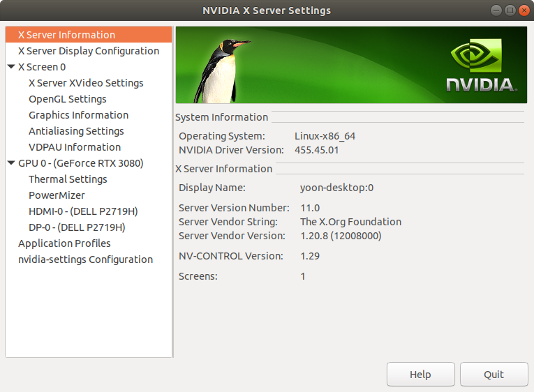 이제 nvidia-settings을 열어 잘 작동하는지 확인해보자