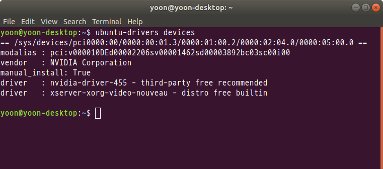 나는 추천 드라이버로 nvidia-driver-455가 떴다.