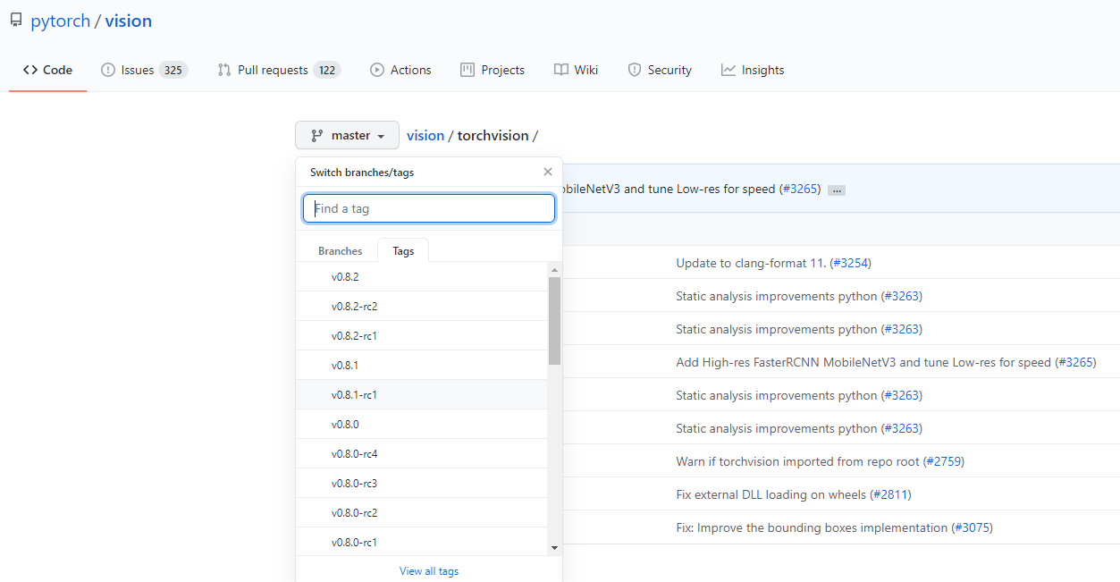 $ git clone --branch v0.8.1 https://github.com/pytorch/vision torchvision