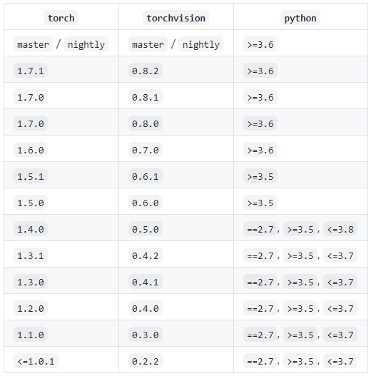github에서 torchvision의 코드를 clone해야하는데, 자신에 맞는 버전을 갖고 와야한다.