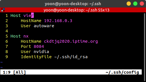 ~/.ssh/config 파일에서 호스트를 설정해 줄 수 있다. 암호키는 IdentityFile 옵션에 암호키 파일 위치를 지정해줄 수 있다.