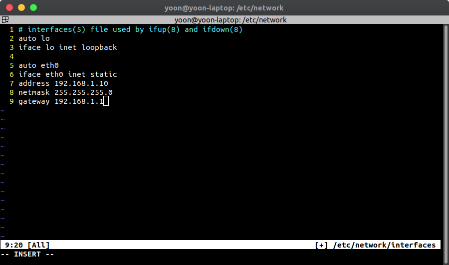 페도라나 RHEL같이 레드헷 기반 리눅스에서는 /etc/sysconfig/network-scripts 디렉터리에 각 인터페이스 별로 설정파일이 존재하는데, 우분투에서는 /etc/network/interface 파일에서 찾을 수 있다.