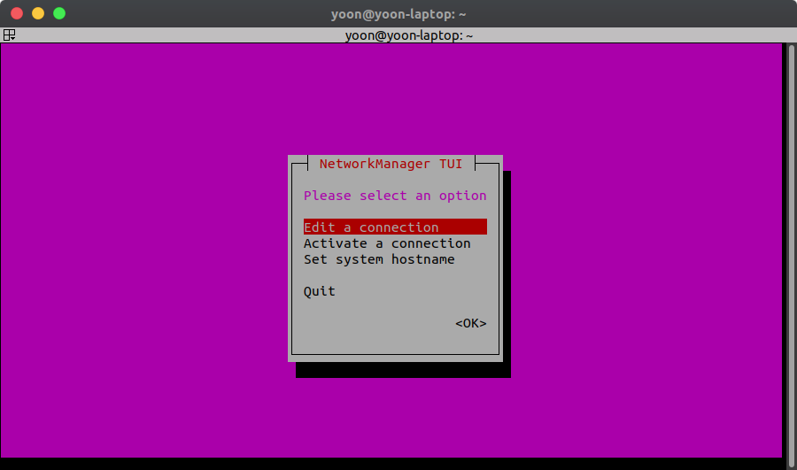 nmtui로 네트워크 매니저에서 했던 설정들을 똑같이 커맨드창에서 편집할 수 있음