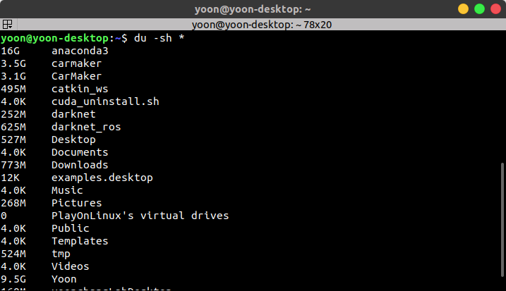 du -sh * 명령으로 해당 디렉터리 디스트 사용량을 알 수 있다.
