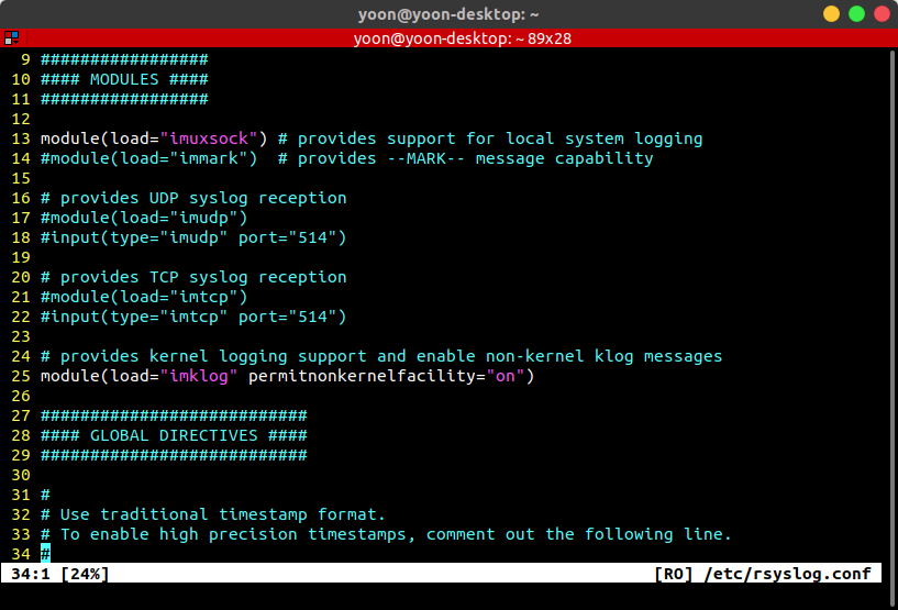 1. /etc/rsyslog.conf 파일을 에디터로 연다.