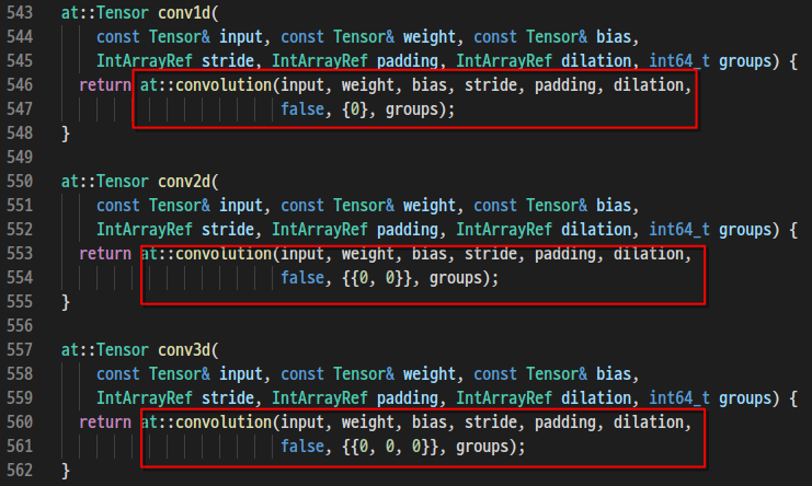 conv2d의 함수는 다시 at::convolution의 함수를 return한다.