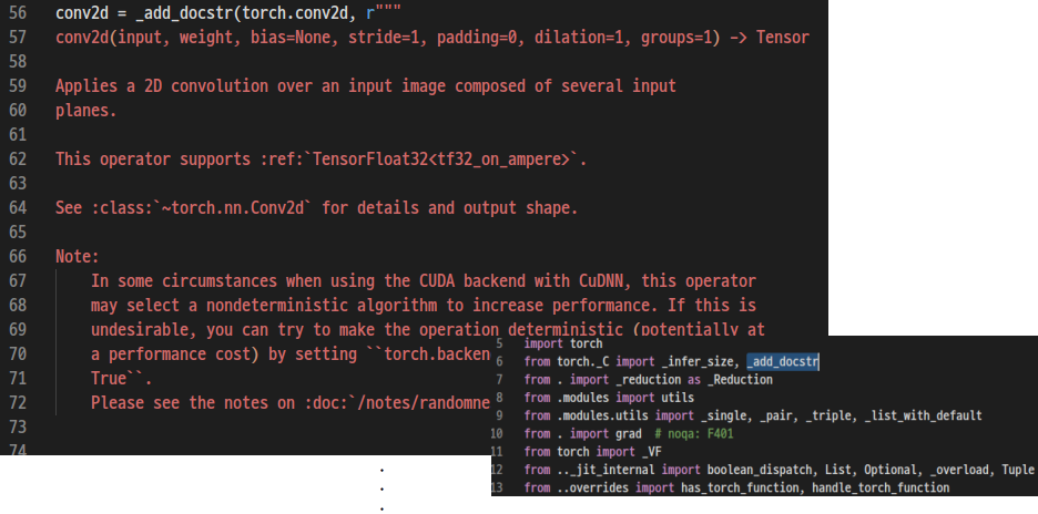 functional 모듈에서는 conv2d에 관한 정의가 _add_docstr() 밖에 없었다. _add_docstr은 함수를 정의한 것이 아닌, 미리 정의된 함수에다가 doc string을 추가하여 문서화한 것이기 때문에 source code를 bottom-up 방식으로 찾을 수 없었다. 나는 anaconda버전으로 배포한 pytorch를 설치한 것이기 때문에, source code가 폴더에 없었다. github에서 pytorch 소스코드를 다운받아 찾아보기로 한다. (깃헙 : github.com/pytorch/pytorch)