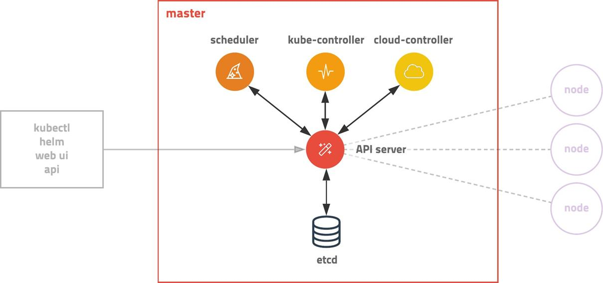 아키텍처를 좀 더 간략하게 표시하면 위 그림과 같다. API 서버를 kubectl을 통해, 오픈소스 프로젝트 helm이나 GUI(web) 혹은 api로 직접 등등 다양하게 명령을 내릴 수 있다.