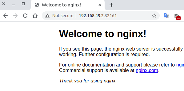 services의 Port가 32161 이었으므로, (minikube node의 IP):32161로 nginx 서비스에 접근이 가능하다.