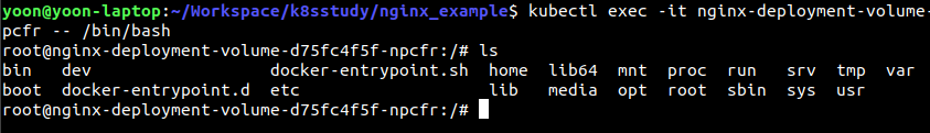 $ kubectl exec -it (Pod 이름) -- /bin/bash