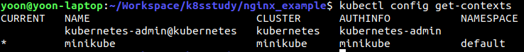 예전에 minikube로 실습할 때, $ minikube start 명령은 자동으로 kubectl의 context를 minikube로 설정해주기 때문에 따로 kubectl의 context를 설정할 필요 없이 바로 minikube 클러스터에 명령이 가능했었다.
