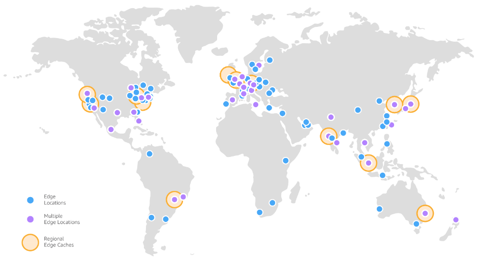 - 엣지 로케이션에 콘텐츠(데이터)를 캐싱하여 사용자에게 더 짧은 지연 시간으로 콘텐츠를 전송